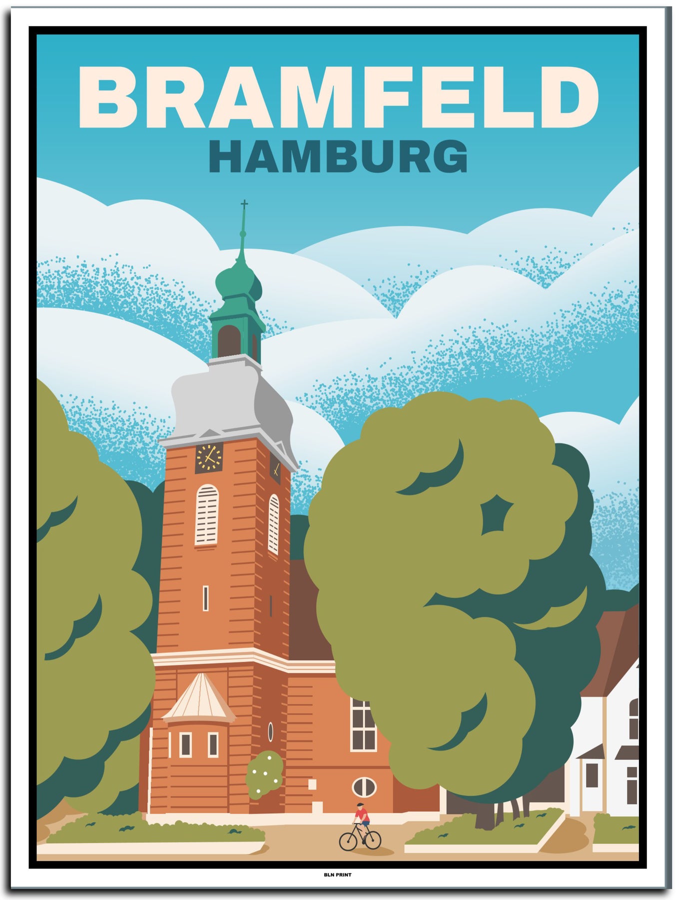 vintage kunstdruck travel poster Hamburg Bramfeld #30x40cm-weier-farbrand