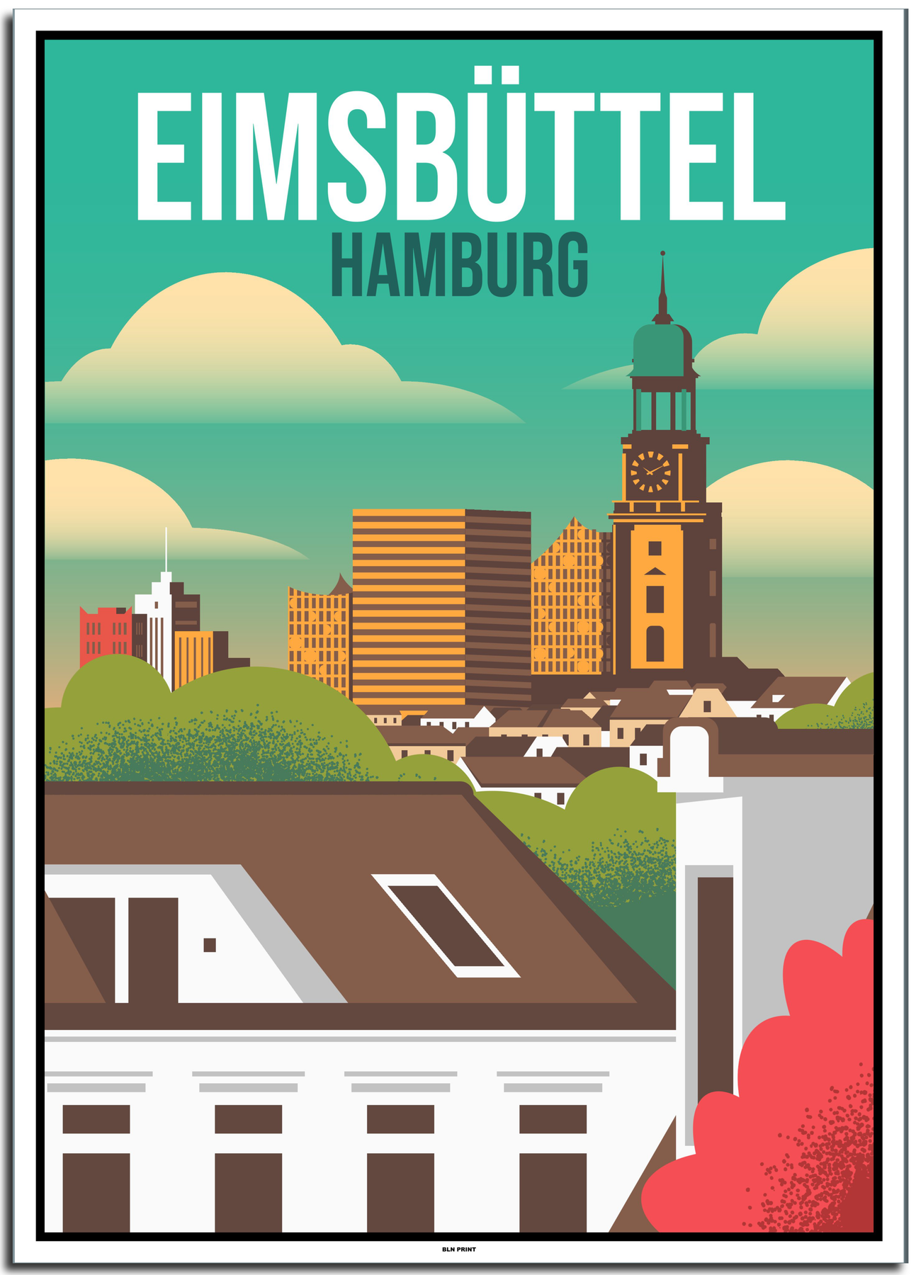 vintage kunstdruck poster hamburg eimsbüttel #30x40cm-weier-farbrand