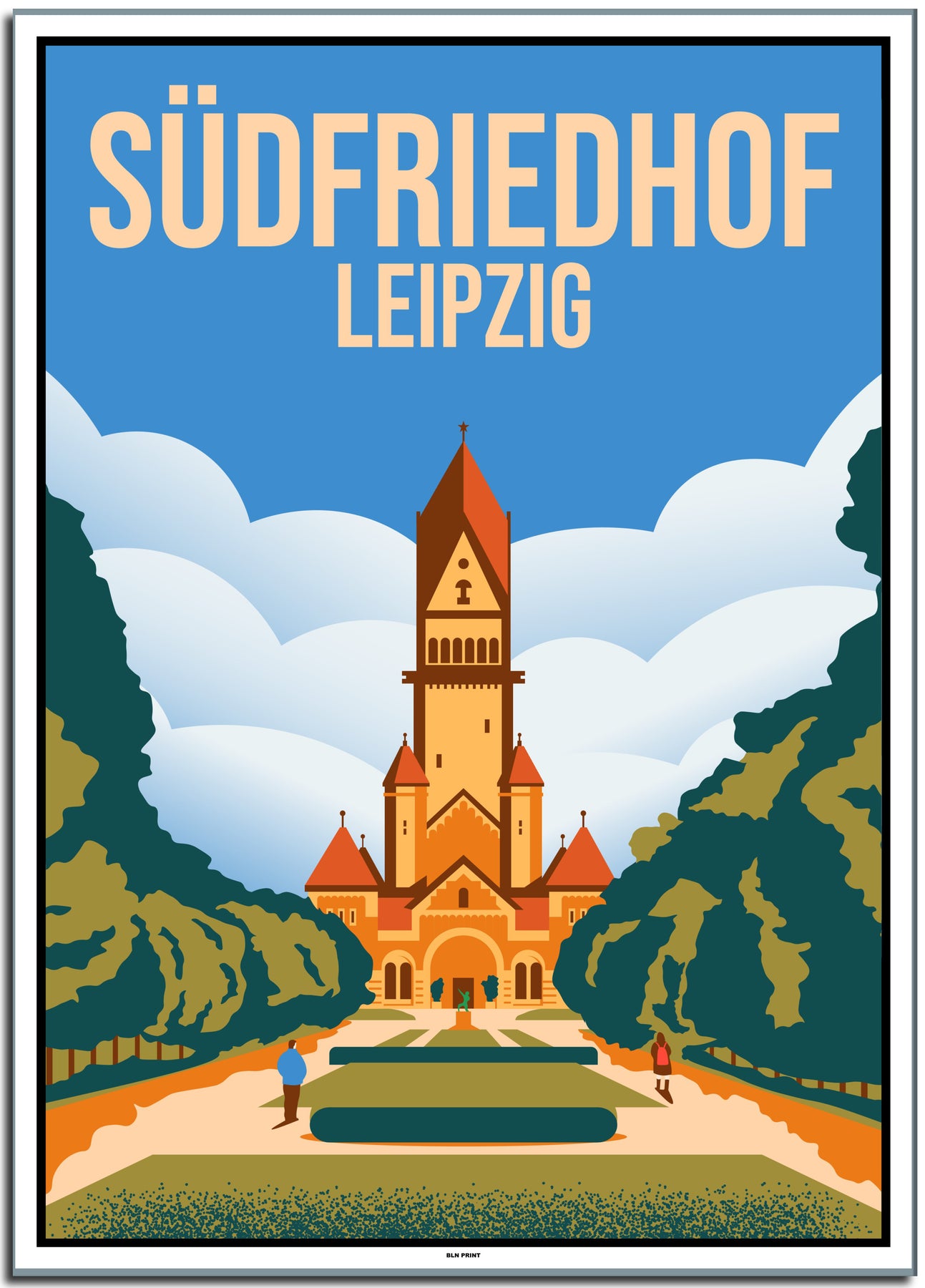 vintage kunstdruck poster Südfriedhof Leipzig #30x40cm-weier-farbrand